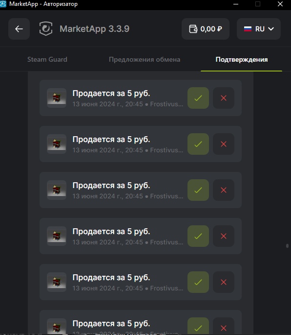 Сделайте, пожалуйста, автоматическое подтверждение лотов, выставленных на тп стима, либо кнопочку ПОДТВЕРДИТЬ ВСЕ
